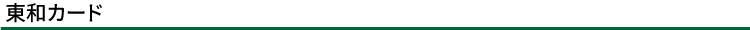 | お申込資格 東和カードをお持ちの方、または東和カードとETCカードを同時にお申し込みいただける方となります。 ※ETCカードのみのお申し込みはETC決済専用ビジネスカードをご利用ください。 ※ETCカードは、お食事やショッピング(有料道路のサービスエリア・パーキングエリアの売店を含む)など、通常のクレジットカードとしてはご利用いただけません。お食事などの際には、東和カードをご利用ください。 年会費 年会費永年無料 新規発行手数料として1枚につき1,100円(税込)を申し受けます。 |